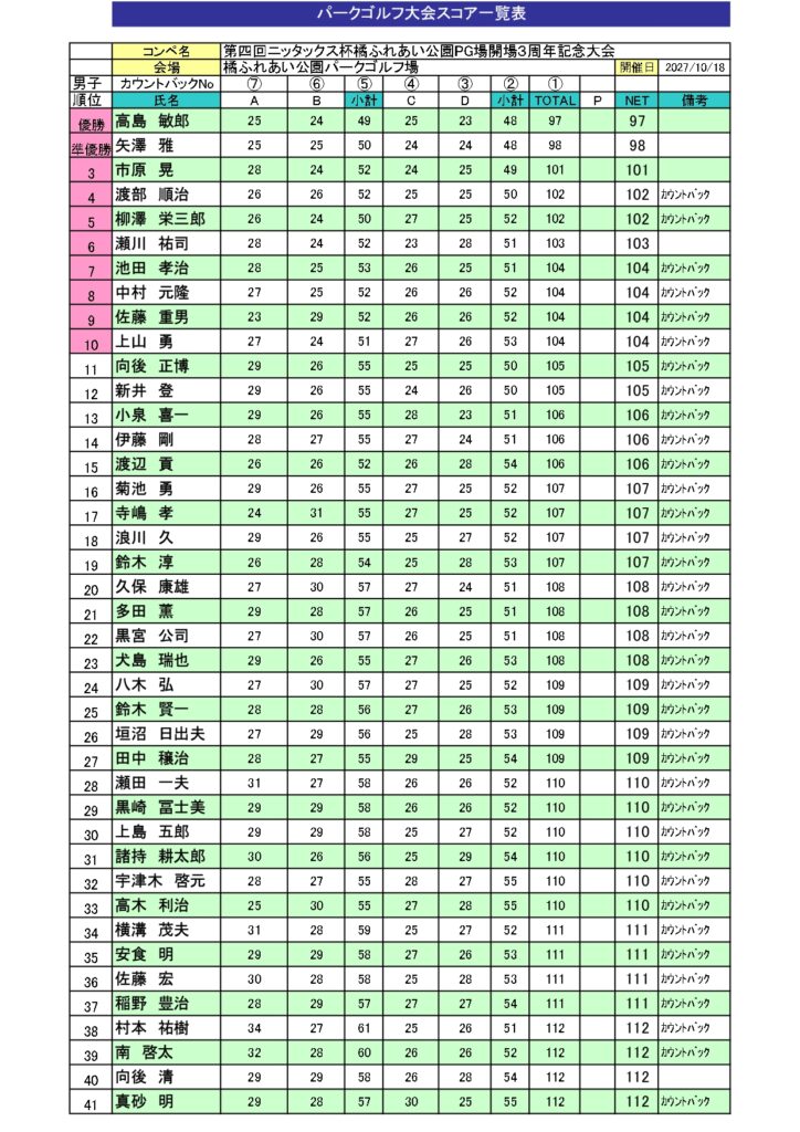 女性の部では、10月13日に開催されたNPGA全国大会開催 記念トーナメントを制した長谷川さんが、今大会でも安定したプレーを見せ、2大会連続の優勝を達成。男性の部では、同トーナメントのプレーオフで惜しくも敗れた高島さんが、見事に雪辱を果たし、堂々の優勝を飾りました。