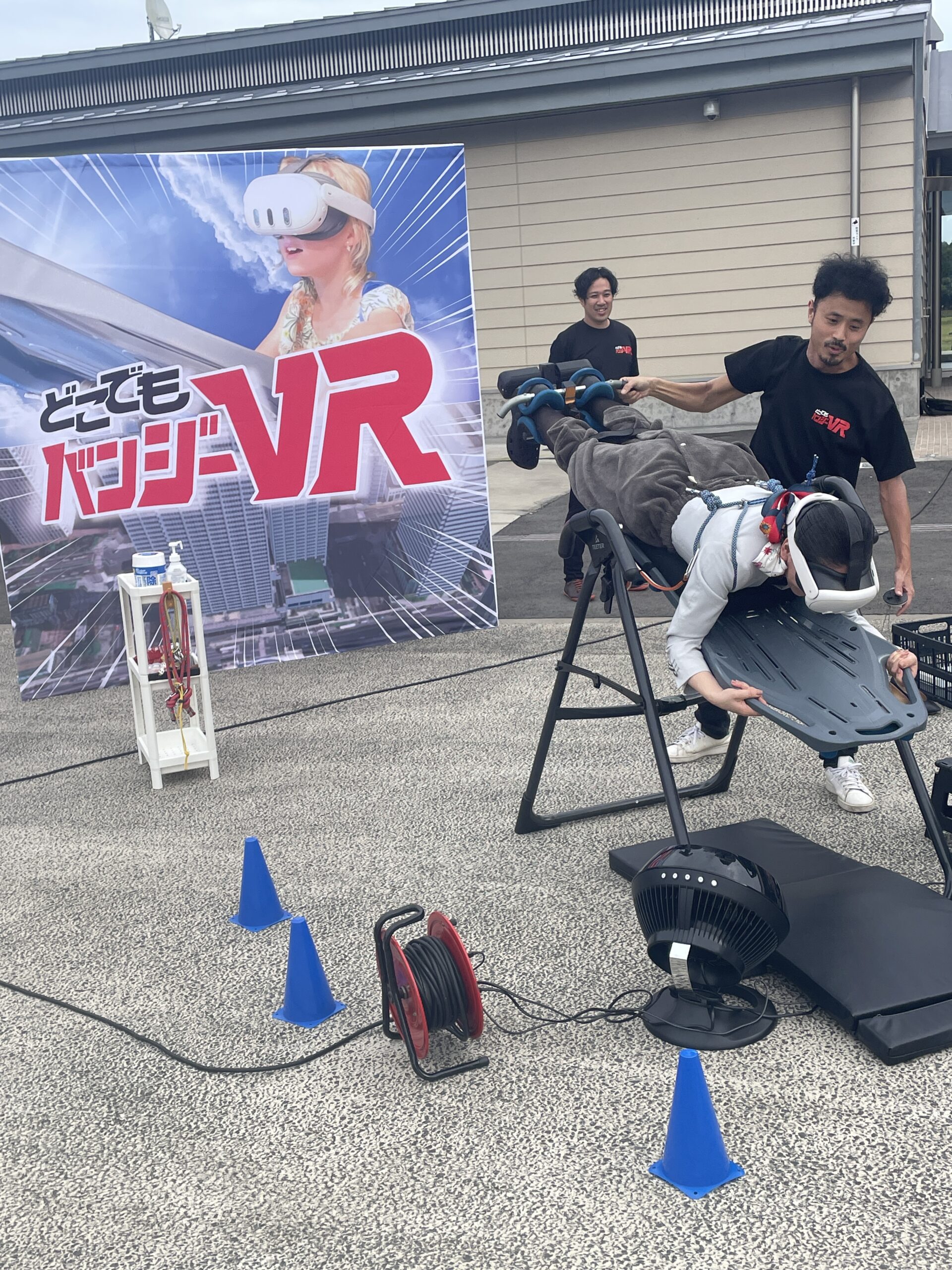 今回のフェスでは、香取市初登場となる「VRバンジージャンプ」が大きな注目を集めました。高さ243mの東京都庁から飛び降りる感覚を仮想空間で体験できるこのアトラクションは、ゴーグルを装着してジャンプするスリル満点の内容。参加者からは「本当に飛んでるみたい!」「足が震えた!」といった声が上がり、絶叫と笑顔があふれる人気コンテンツとなりました。