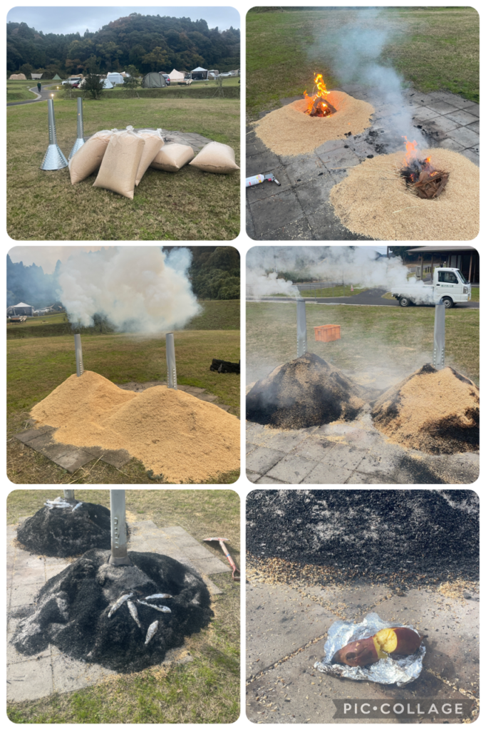 11月23日、キャンプのお客様に特別なひとときを届けたくて、香取地域で「すくも」と呼ばれるもみ殻を使って燻炭にし、焼き芋づくりに挑戦しました。 すくもの準備から着火、じっくり火を育てて、芋がほくほくになるまで…なんと5時間! 手間ひまかけた分、香ばしさと甘みがぎゅっと詰まった焼き芋が完成。 焚き火のぬくもりと、田舎ならではの素材の力で、心も体もぽかぽかに。